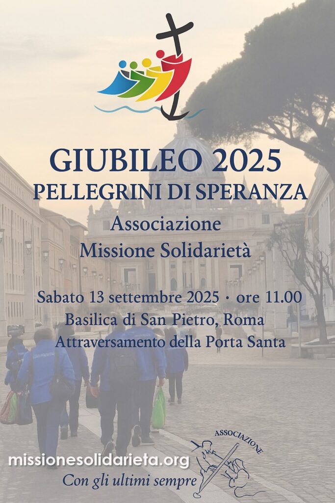 Il Giubileo richiama tutti i credenti a riscoprire la speranza e la gioia del Vangelo. Missione Solidarietà partecipa con il proprio stile di servizio, fedele al motto: “Con gli ultimi sempre”.